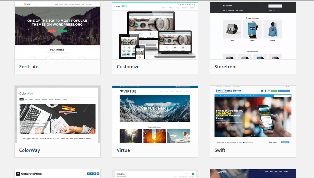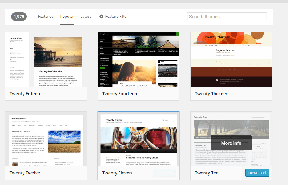 WordPress maintains a list of popular themes on its website. The top six popular are the twenty series default themes which come prepackaged with the WordPress package, hence deserve not to be checked. The next six have some interesting info.