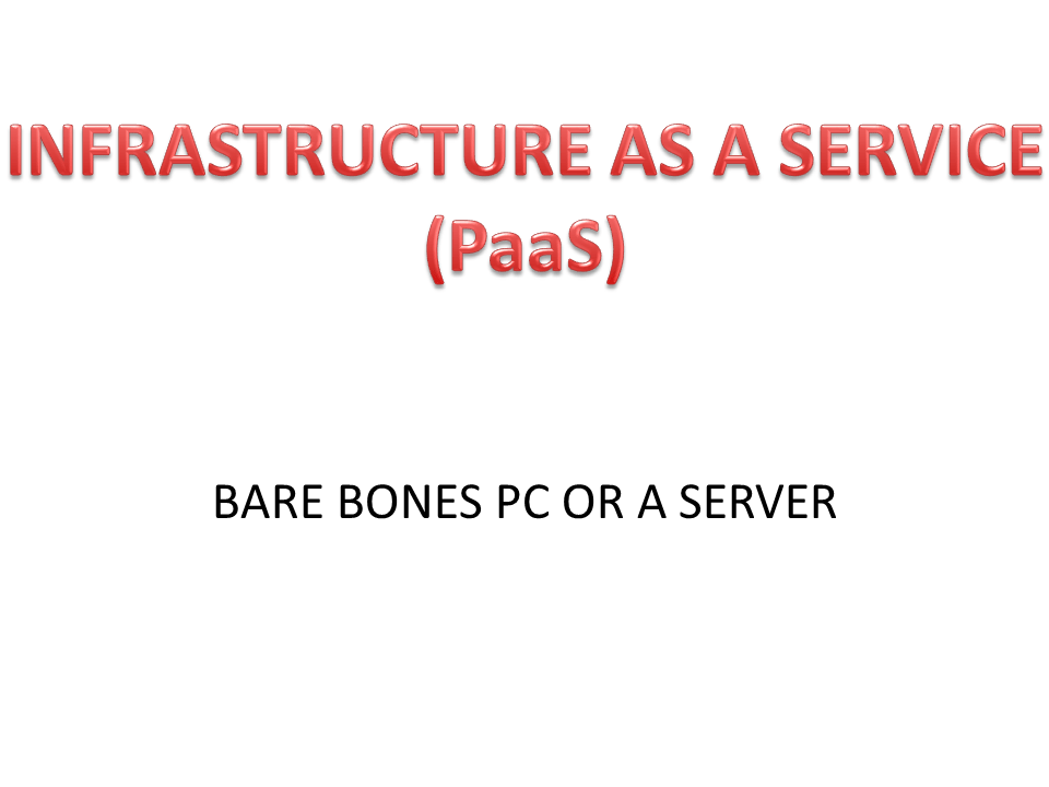 Here the service provider gives a user the complete setup to develop applications. These applications can now be deployed on say the internet where others can use them. The facility is used by programmers who want to develop and deploy their own applications, but do not want to buy and maintain the infrastructure. Most big players have this setup up and running. Amazon AWS, Microsoft Azure to name a few.