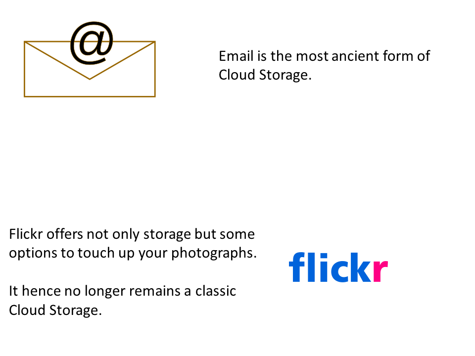 Strictly speaking, if you are sending an email to someone with a file as an attachment, you are sending the file to a cloud storage. This version of cloud storage has been with us for ages. An improved version of Cloud Storage with little flexibility and options came up later. Best example is DropBox which is essentially saving your files, be it photographs or office documents, on a remote server or locations which can be accessed from anywhere from any device. You basically needed only an internet connection.
