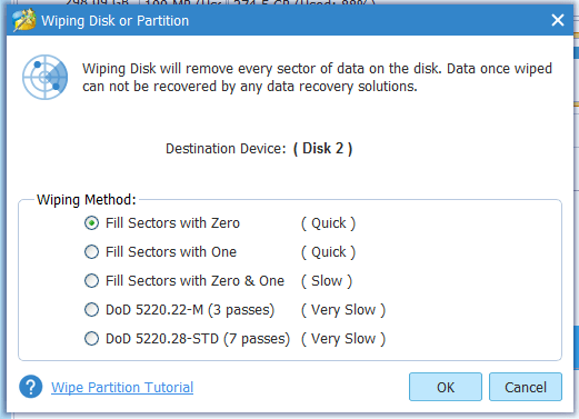 Please note, the more passes will mean more time depending on the size of the disk too.